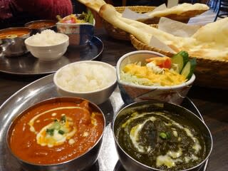 ★こちらの「セット」の「2種類のカレー」は、『バターチキンカレー+チョイスカレー』なのである! そこで今回も、このお店で以前にはいつもオーダーしていて且つお値段がやや“高め”である『ほうれん草チキンカレー』をチョイスしたのであった! ちなみに通常の「ランチメニュー」では『ナンorライス』が“1回おかわりOK!”なのだが、この『ランチDセット(2種類のカレー)』では“おかわり何回でもOK!”なのである! とは言えども、あっし・らには「1回」ですら“おかわり”は“無理”であると思われるんだけどね。。。ぼそっ!